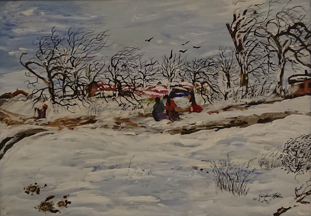 The first pictures of the exhibition were colorful and bright and the aim of the artist was to show the beautiful life she had before the deportation. Gradually the colors of the paintings got darker and as I continued looking at them and analyzing them in my mind I had the feeling of being in a camp myself. I had goosebumps, I felt how the room was getting dark and the ways were getting narrow.